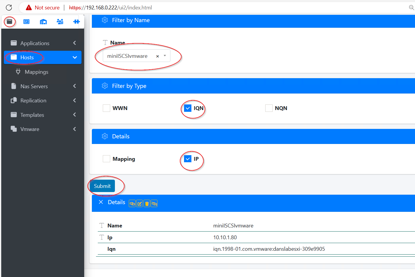 - Select Applications and then Nas Servers